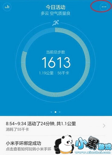 先请手机上打开小米手环,点击右上角的“更多”选项图标,如图所示