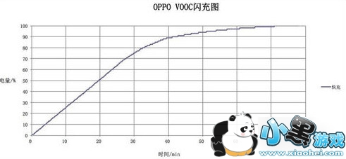 测试过程中,OPPO R7从28%充电至100%一共花了1小时零1分,加上之前10分钟充20%出头的电量,基本上从0到100%大概在70分钟左右。 通过测试,这也与OPPO官方给出的充电时间十分吻合,官方给出的充电过程图如下。