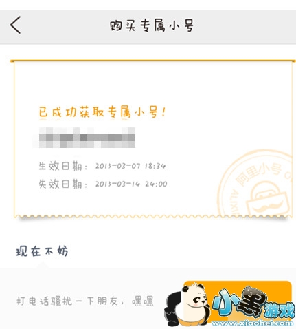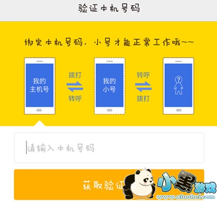 输入手机号码后,手机会收到验证码,输入验证码后,点击“确定”,在“我的小号”界面,点击获取专属小号。