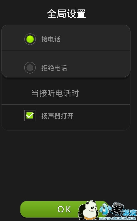 3、点击开关后面的小齿轮就是设置的按钮,上边是接听按钮,您要是接听就选择第一个,点击下边ok即可