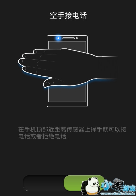 2、打开之后,下边就有一个开关,这个打开就可以了,不想用点击关闭就行了,这个功能是在手机顶部近距离传感器上挥手就行了,实现接电话和拒绝电话功能