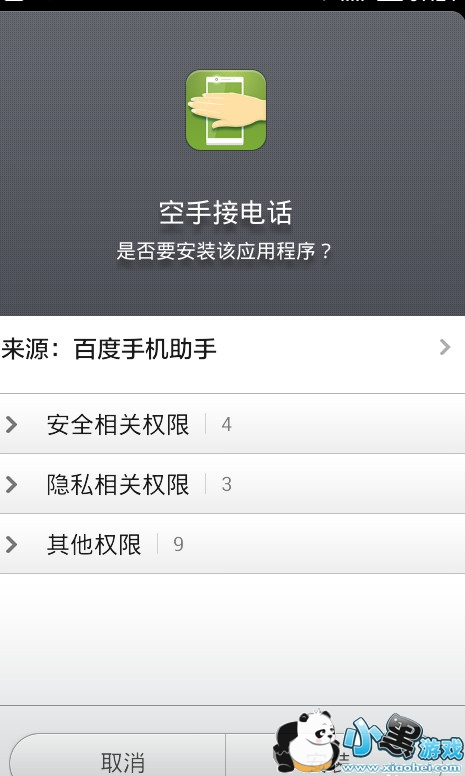 1、首先我们先下载一款空手接电话的APP下,提示安装完成,我们点击打开就好了