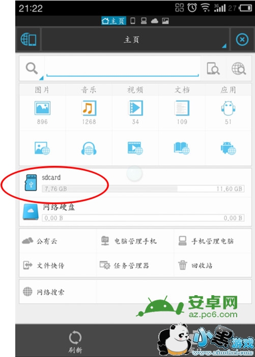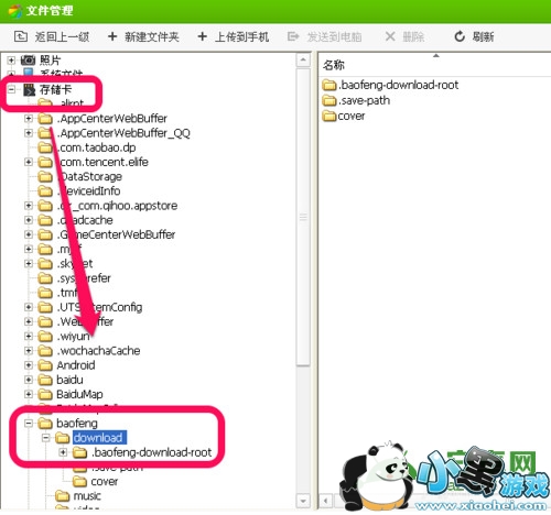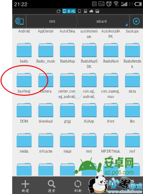 进入文件管理目录,找到存储卡,找到暴风baofeng