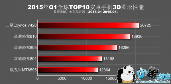 如今随着APP的不断进步升级,手机的3D图形性能也成为大家关注的焦点。占据2015年Q1全球TOP 10安卓手机3D图形性能榜首的芯片同样是三星Exynos 7420,然后依次为高通骁龙810、骁龙805、骁龙801和联发科MT6595。尽管在性能跑分中联发科MT6595取得了不错的成绩,但是它在图形性能方面的表现确实相比其它的芯片而言确实差了一些。
