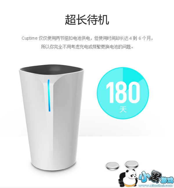 Cuptime仅仅使用两节纽扣电池供电,但使用时间却长达4-6个月,所以你完全不用考虑充电和频繁更换电池的问题。