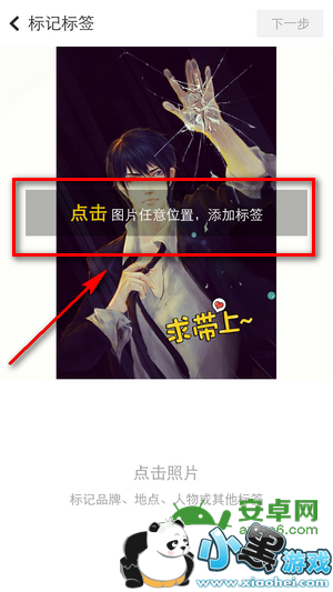 就是最重要的添加标签了,点击图片任意位置都可以添加标签(标签有人、地点、心情的选项)