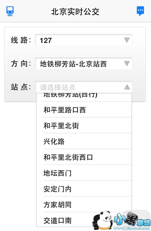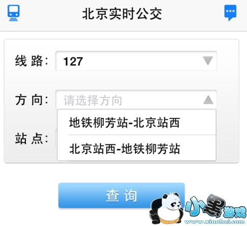 然后我们直接来到北京实时公交的主页面上来,我们可以看见实时公交的有线路和方向的选项,我们可以在上边的找到我们准备乘坐的路线选中即可