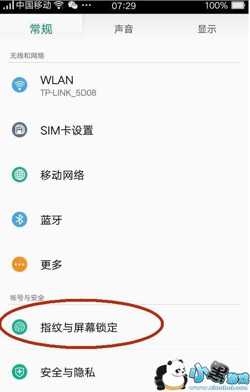 2、点击进入设置窗口之后,我们在账号与安全中就可以看到指纹与频幕锁定,点击进入