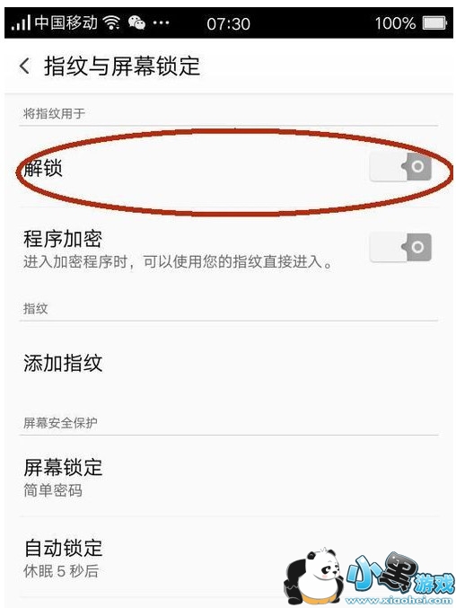 8、指纹密码设置完成以后,在锁屏状态解锁就可以通过输入解锁密码或者是录入的指纹进行解锁了