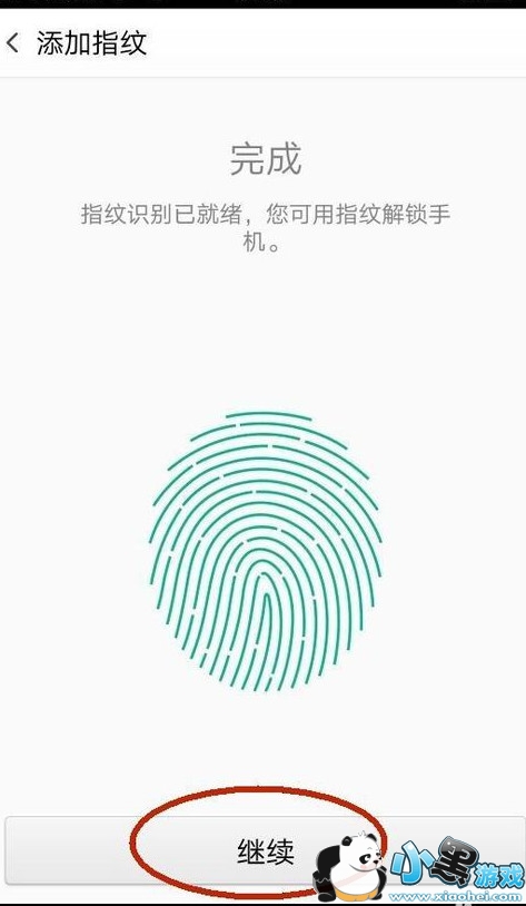 6、点击添加指纹以后进入到添加指纹窗口,在窗口上面根据提示将手指放到手机后面摄像头下方,需要录入多次,录入完成以后点击继续