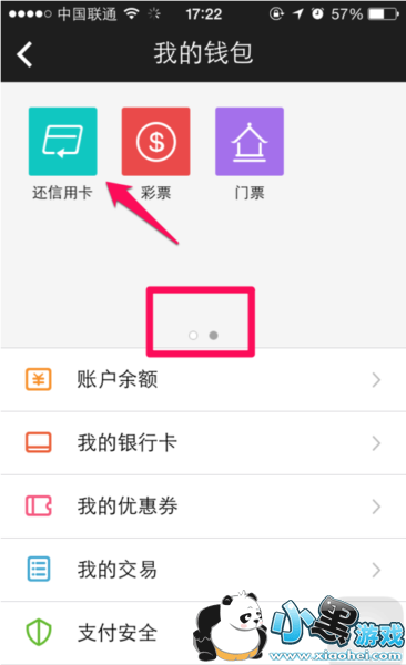 第二:下面来到我的钱包首页,如果在上面的功能选项中没有看到信用卡还款选项的话,需要自己通过滑动到下一页。