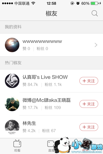 第三个【椒友】可以关注好友,第一时间看到好友的直播视频!