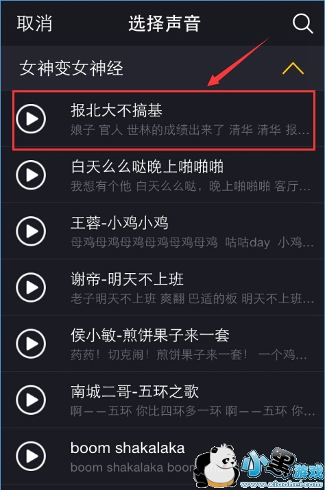看见点击声音库了吗?你可以去选择自己喜欢的声音,在声音库里有着超多丰富搞笑的声音分类,总有一款适合你,点击其中一类女神变女神经病,就有着大量的声音,起它的那就更加了。