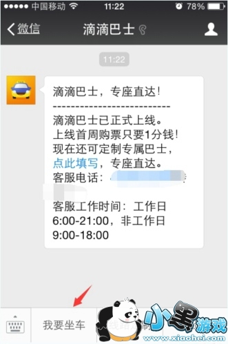第一步:首先要用微信关注滴滴巴士,然后我们进入滴滴巴士公众号主窗,点击下方的“我要坐车”,如下图所示:
