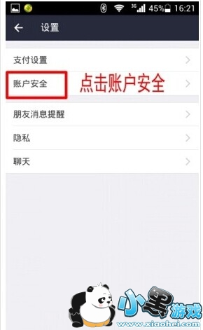 第三步:然后点击“账户安全”