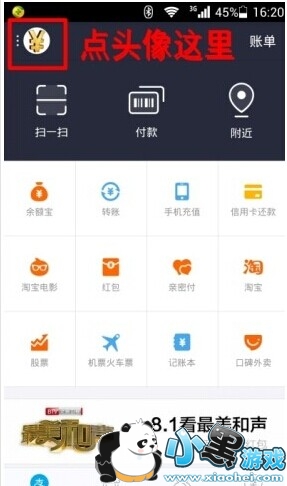 第一步:打开支付宝后,点击我的头像