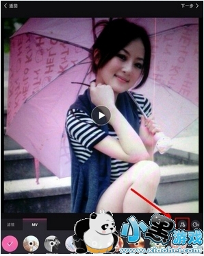 第二步:视频拍摄完成后,就可以根据个人喜好增加滤镜和MV了,然后右下角点击“添加音乐”。