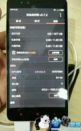从网友的曝光来看,红米Note 2似乎没有指纹识别功能,运行系统为Android 5.0.2,内存为2GB RAM+16GB存储空间(可扩展),搭载的是2GHz的MT6795M八核处理器。