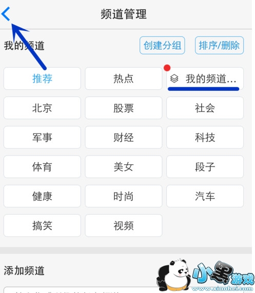 在频道管理页面“我的频道”中,可以看到刚新建的分组有。点击左上角的返回按钮。