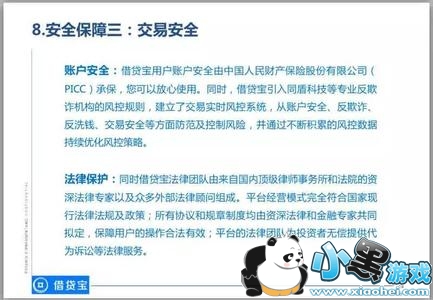 借贷宝平台要开展的是有关于借贷的金融业务,对于安全的要求比一般网上交易和支付平台更高。公司与借贷宝合作的中国银联出于安全考虑,要求借贷宝用户提供”五要素“认证,比一般的互联网金融支付平台多了“输入银行卡密码“这一要素。该增加的要素,将有效防范出现不法分子冒用用户名义与他人发生金融交易行为的风险。同时该密码输入和验证是跳转到中国银联的页面完成的,借贷宝无法留存该密码,中国银联也不允许留存该密码,借贷宝作为九鼎旗下的互联网金融公司,也不可能去留存该密码。此外,中国人民保险公司对借贷宝的账户和支付安全提供承保。
