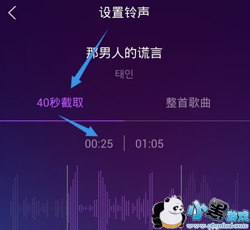 然后QQ音乐就会对你的这首歌曲进行一个40秒的截取,作为你的手机铃声