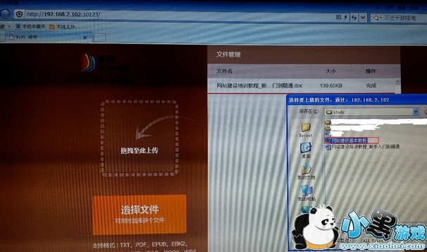 在弹出对话窗口中选择本地电脑中你要传送到手机端的文件书籍,也可直接拖曳文件上传,之后点击”保存“。