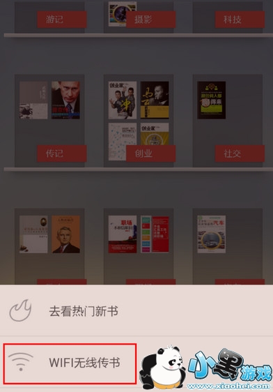 会弹出一个菜单,选择点击“WiFi无线传书"
