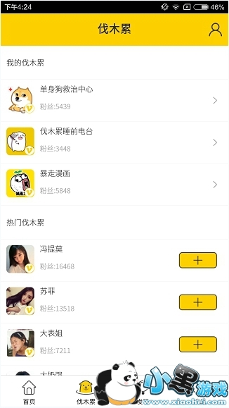 点击“伐木累”,你将进入到伐木累页面,这里有你关注的伐木累和热门伐木累信息。