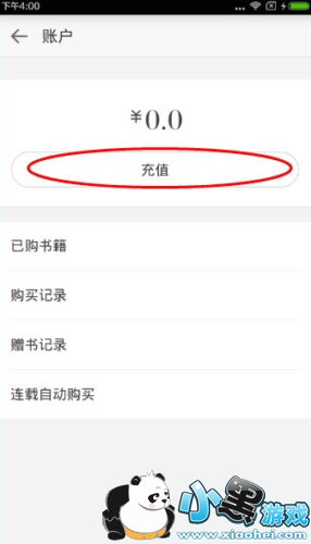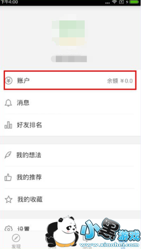第二步:点击账户,然后进入账户的界面,就可以看到自己的余额,然后点击充值。