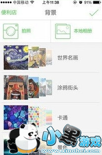 第二步:任意选择一个你喜欢的背景图案,然后将裁好的素材填进去就可以了。Wecut会为用户提供了各式各样的背景,包括世界名画、涂鸦街头、纯色,以及颇具造型感的X-Polygon等,你也可从相册中直接选择。