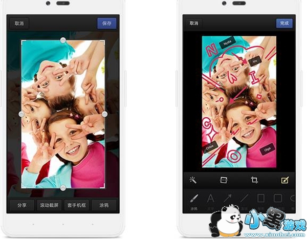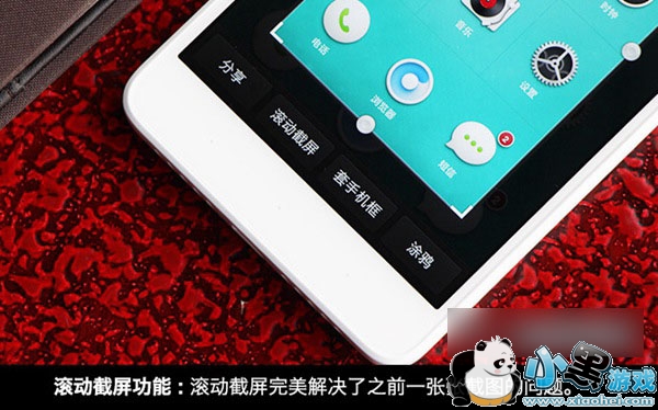 按住上方电源键和底部中间home键不动,调出区域截屏界面,区域截屏中增加涂鸦功能,能够直接标注截屏的内容。如下图所示;
