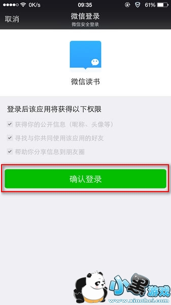第一步:安装微信读书app,然后我们就可以直接微信登录,微信登录时会提示该应用将获得以下权限,点确认登录即可。