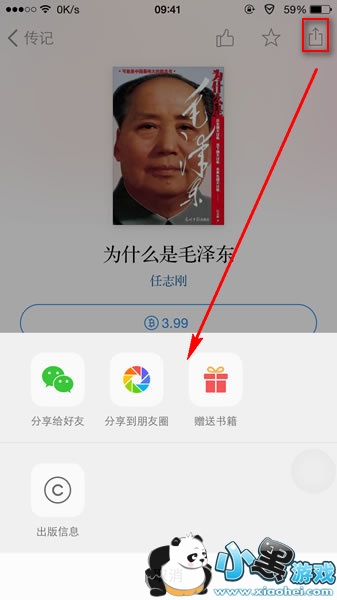 PS:还可以点右上角将书分享给微信好友或者朋友圈,当然还可以查看书本的出版信息及赠送书籍给好友。