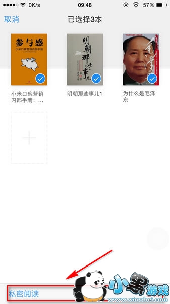 第八步:书架里的书籍可以直接按住书籍不松手,然后选择要删除的书籍,直接删除即可或者私密阅读。