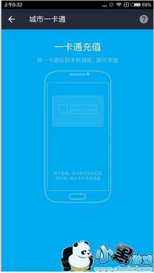 3、将一卡通贴到手机后面就可以充值了。