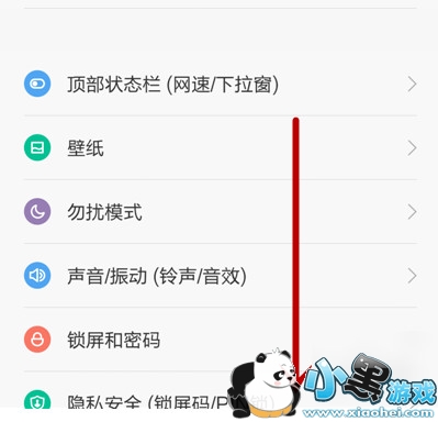 进入之后,系统会提示出很多个设置选项,我们一直向下划动。