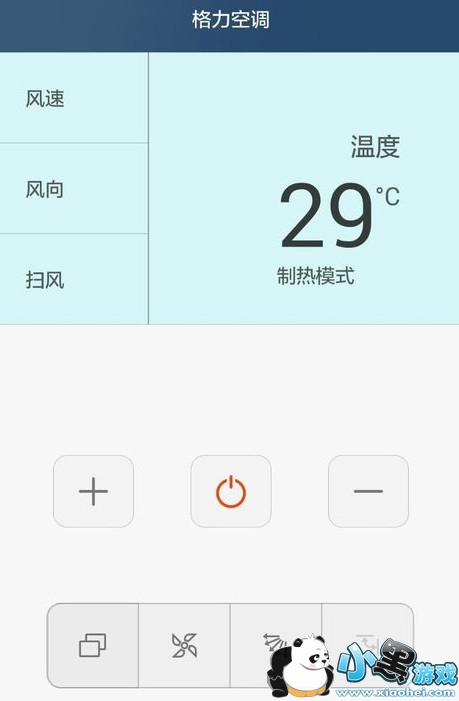 进入空调智能遥控操作界面,我们可以看到温度、风速、扫风、制冷制热模式的调节按钮。