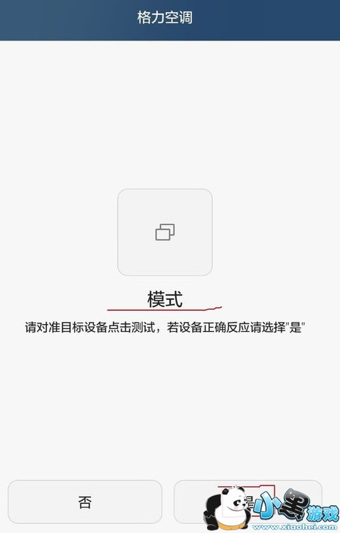 进入模式调试。把手机的红外线发射部位对准空调,进行调试,先点击模式按钮,听到空调“滴”一声反应后,点击是。如果没有听到“滴”的声响,则点击否,重新进入模式调试。
