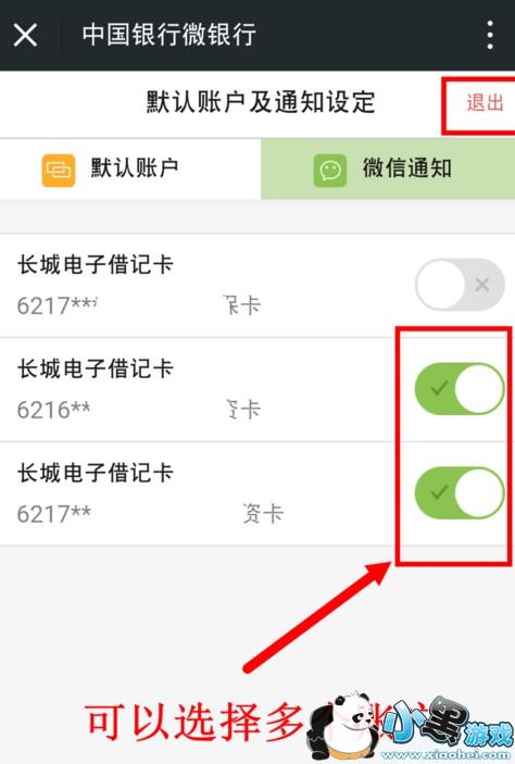 值得说明的是可以打开多个银行卡账户的微信提醒功能。