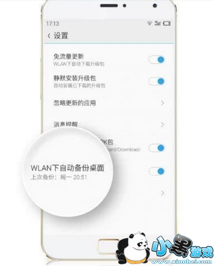flyme4.5以下的版本,需要到应用中心—我的应用—设置,开启「WLAN下自动备份桌面」,其余步骤与4.5基本相同