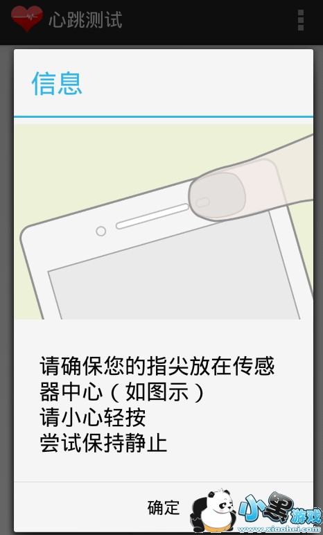 3、使用者根据提示把指尖放到手机顶部传感器位置(听筒右侧)。