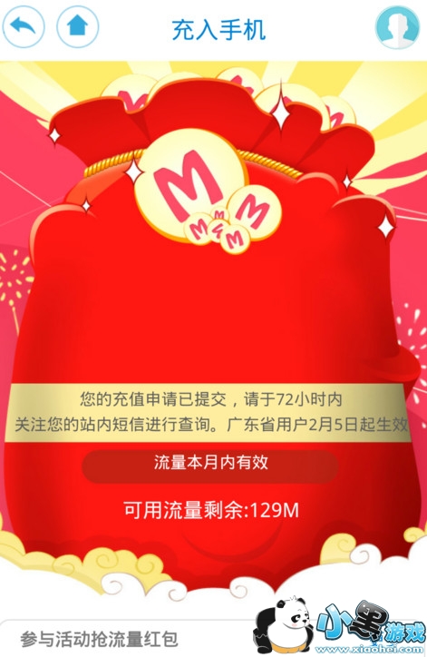 接着大家同时也会收到一个充值申请的短信提示,流量到账也会有短信提醒,等到时候提示你充值成功你就可以用了