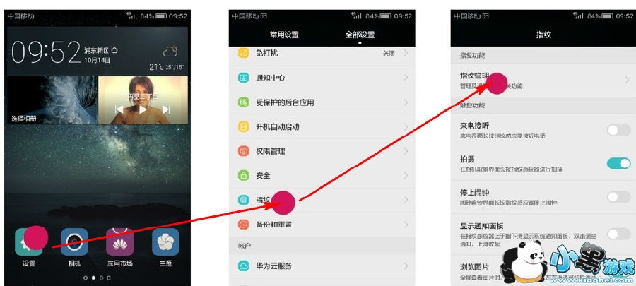在手机上点击“设置”>“指纹”>“指纹管理”。