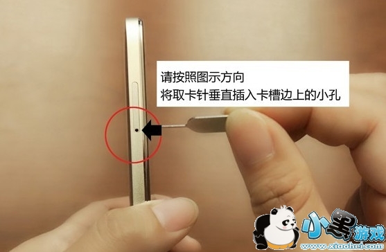 在关机状态下,使用随手机附送的取卡针取出卡托。