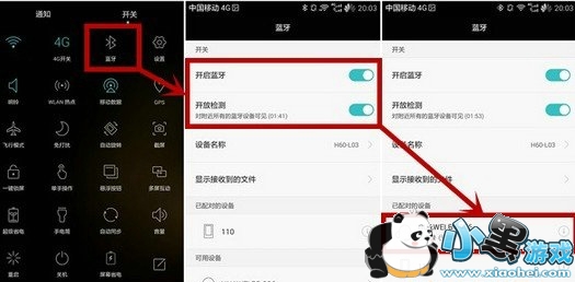 第三步:手指轻触点击一下屏幕,进入蓝牙配对状态,图标闪闪会发生变化,如下图: