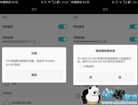 第四步:打开手机蓝牙,搜索附近设备,找到Huawei B2这个设备连接,如下图: