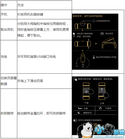 当蓝牙耳机在腕带时:按下腕带两侧按键取出耳机,手环可自动接通来电。