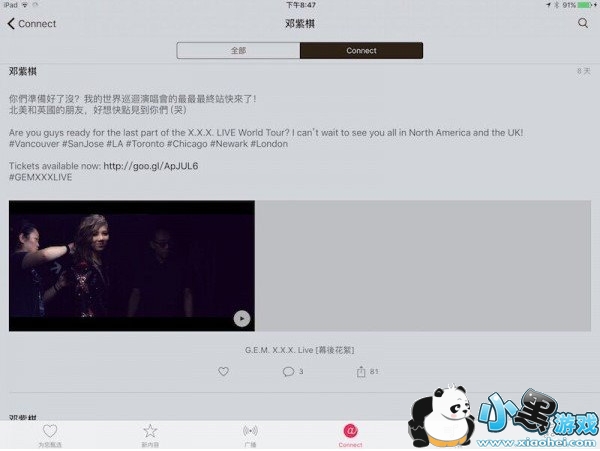 Apple Music还有一个比较特别的页卡叫做Connect,这其实就是苹果最早放弃的音乐社交功能,在最新的Apple Music中苹果将其复活,并加入了很多有意思的功能,只要在这里关注了喜欢的艺人,就可以看到他们推荐的歌单、一些尚未发布的音乐Demo,甚至还可以看到精美的视频花絮,这些花絮都苹果为其拍摄并且独家放在Connect的上面。