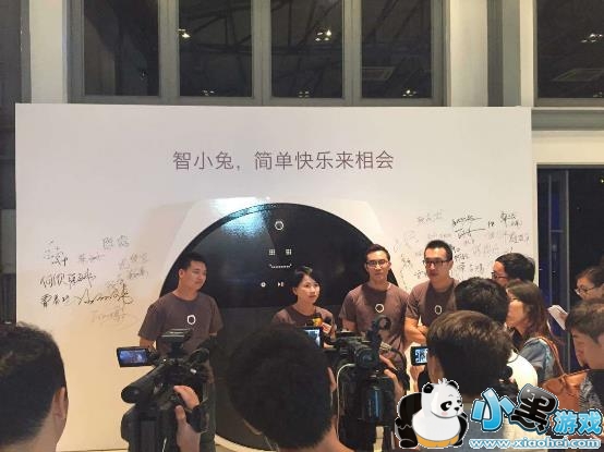 核心团队在巨型立体智小兔前接受多家媒体采访