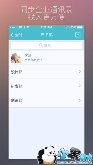 蜜蜂支持模糊搜索。让每个人建立自己的企业社交圈。 每个人都拥有自己的名片,包含领导名称以及与这个用户一起工作的对象,一览无遗。想要沟通?一个按键就可以发起讨论或通话。